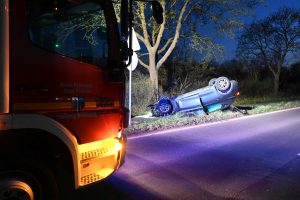 Um 18:37 Uhr wurde der ehrenamtliche Löschzug Brauweiler und die Hauptwache in Pulheim sowie ein Rettungswagen zu einem Unfall auf die L213 gerufen. Als die ersten Kräfte eintrafen, fanden diese eine schwerverletzte Frau neben ihrem auf dem Dach liegenden Fahrzeug vor. Die Besatzung des Rettungswagens kümmerte sich mit Hilfe der ersten Feuerwehrkräfte um die Fahrerin und wurde kurz später auch von einem Notarzt unterstützt. Nach dieser ersten Versorgung wurde die Frau in Begleitung des Arztes in das zuständige Notfallkrankenhaus gebracht.